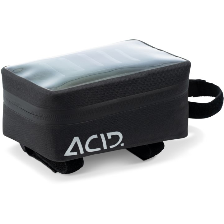 De zon is weer tevoorschijn gekomen en het is weer tijd om met de fiets op pad te gaan. Het is dan handig om genoeg ruimte te hebben om onderweg een aantal spullen mee te kunnen nemen. De Acid Top Tube bovenbuistas heeft een volume van een liter. De tas, gemaakt van weersbestendig, Pvc-vrij TPU, biedt ruimte aan energierepen, geld, tooltje en natuurlijk een telefoon. Deze laatste laat zich door het transparante venster van het top vak gewoon bedienen. Ideaal als je je gsm als navigatiehulp gebruikt. Het top vak met aanraakschermgevoelig venster heeft een afmeting van 16 x 8 cm. Dit is voor telefoons tot 17 x 8,5 cm (L x B).
