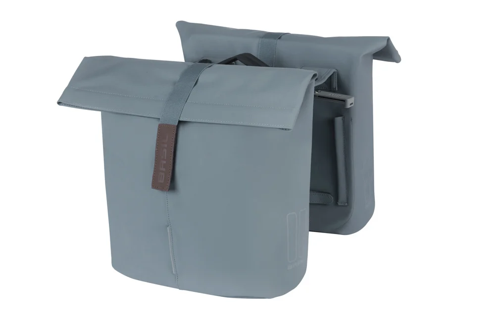 De Basil City is een modieuze dubbele fietstas met genoeg ruimte voor je boodschappen. Uitgevoerd in een blauwe kleur en geschikt voor bevestiging achterop je (elektrische) fiets.