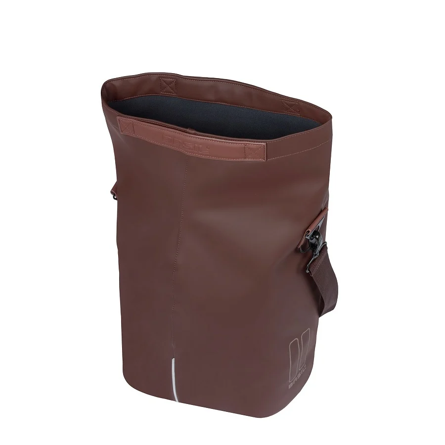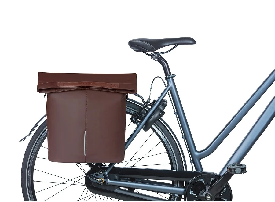 Deze enkele fietstas alias schoudertas en shopper heeft een waterkerende vouwsluiting met magneet, Hook-On systeem en reflectie. En de praktische City Shopper met vegan leather details is óók nog eens elegant.
