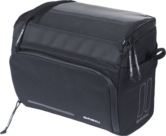 Dankzij de handige schouderriem en handgreep neem je de tas eenvoudig mee als je even stopt voor een pauze. De tas is verkrijgbaar in stijlvol zwart en voorzien van reflectie zodat je goed zichtbaar bent in het verkeer. De tas wordt geleverd inclusief een voorgemonteerde Basil KF adapterplate (70158), waardoor je hem snel en eenvoudig kunt bevestigen aan je stuur, en ook weer gemakkelijk kunt meenemen. Let op: het KF bevestigingssysteem is niet inbegrepen