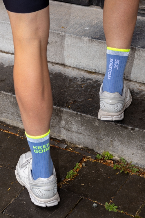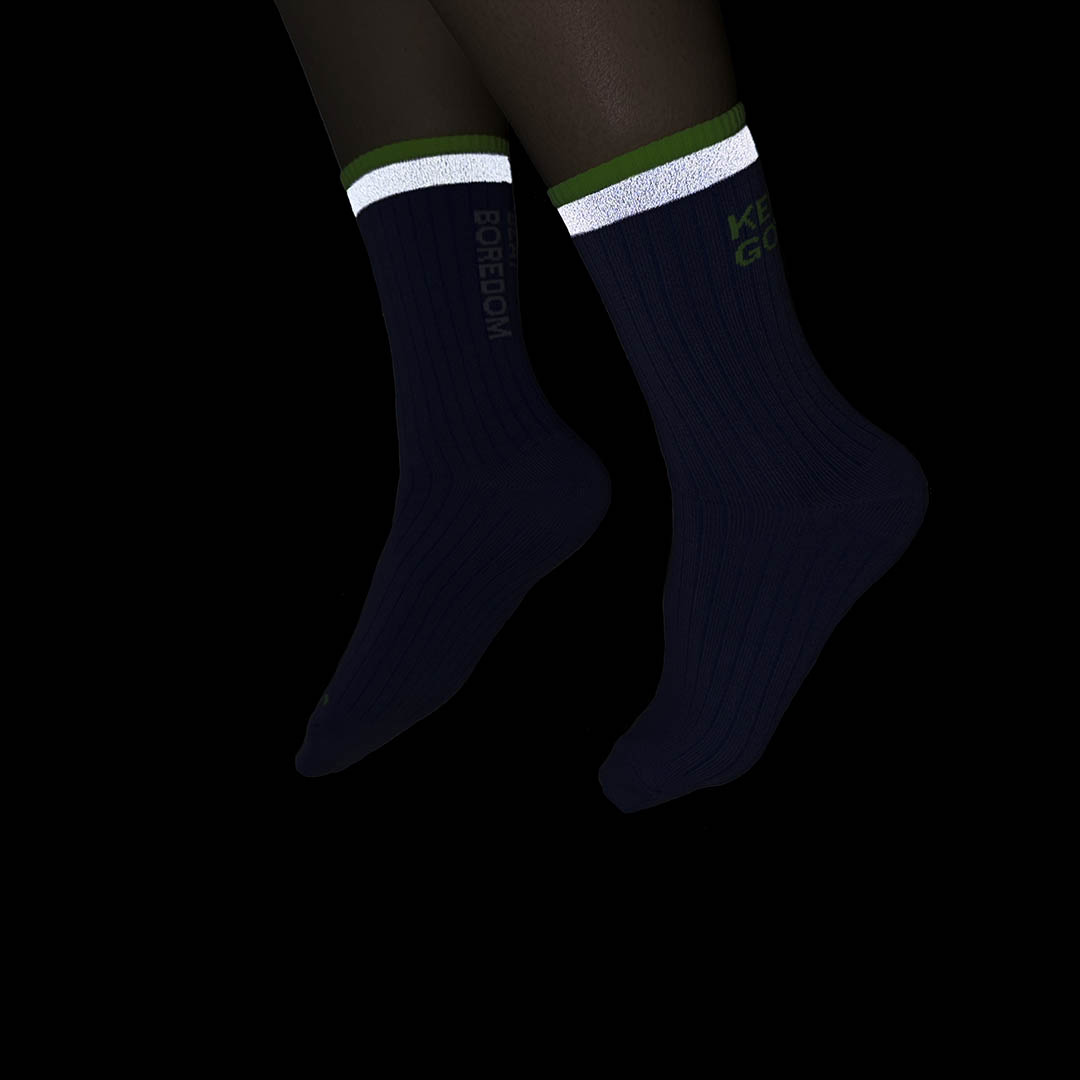 These lifestyle socks are designed to keep you moving. Each sock features a different unique motivational quote, giving you an extra boost with every step. The reflective stripe at the top enhances visibility, keeping you going strong, day and night with a smile