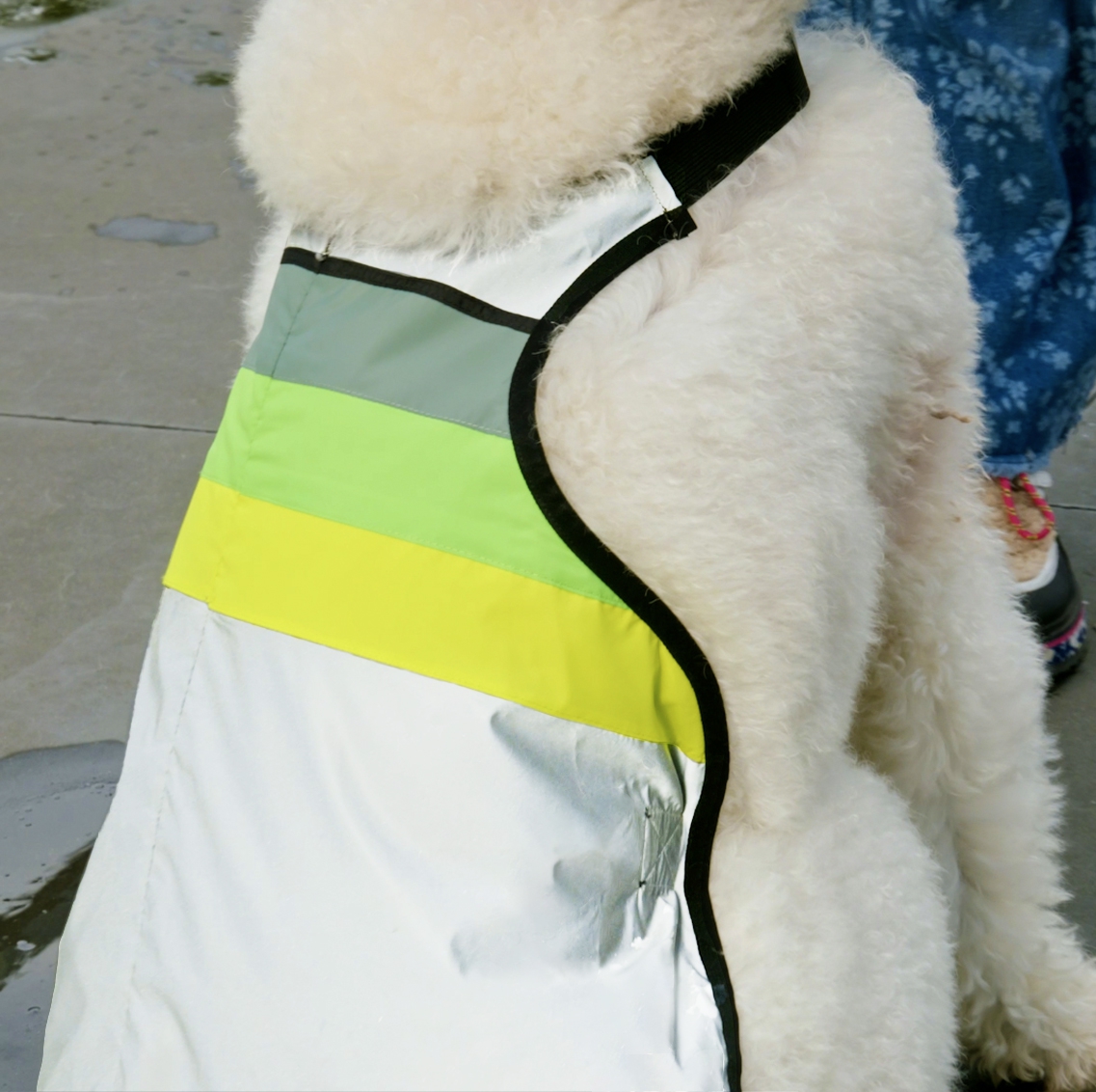 Deze doggyglower is verstelbaar met de elastische riemen aan de hals en buik. Pas deze aan zodat het hesje onderweg goed blijft zitten. In de regen blijft je hond droog en kan je nadien het hesje gemakkelijk schoonmaken met een doekje.