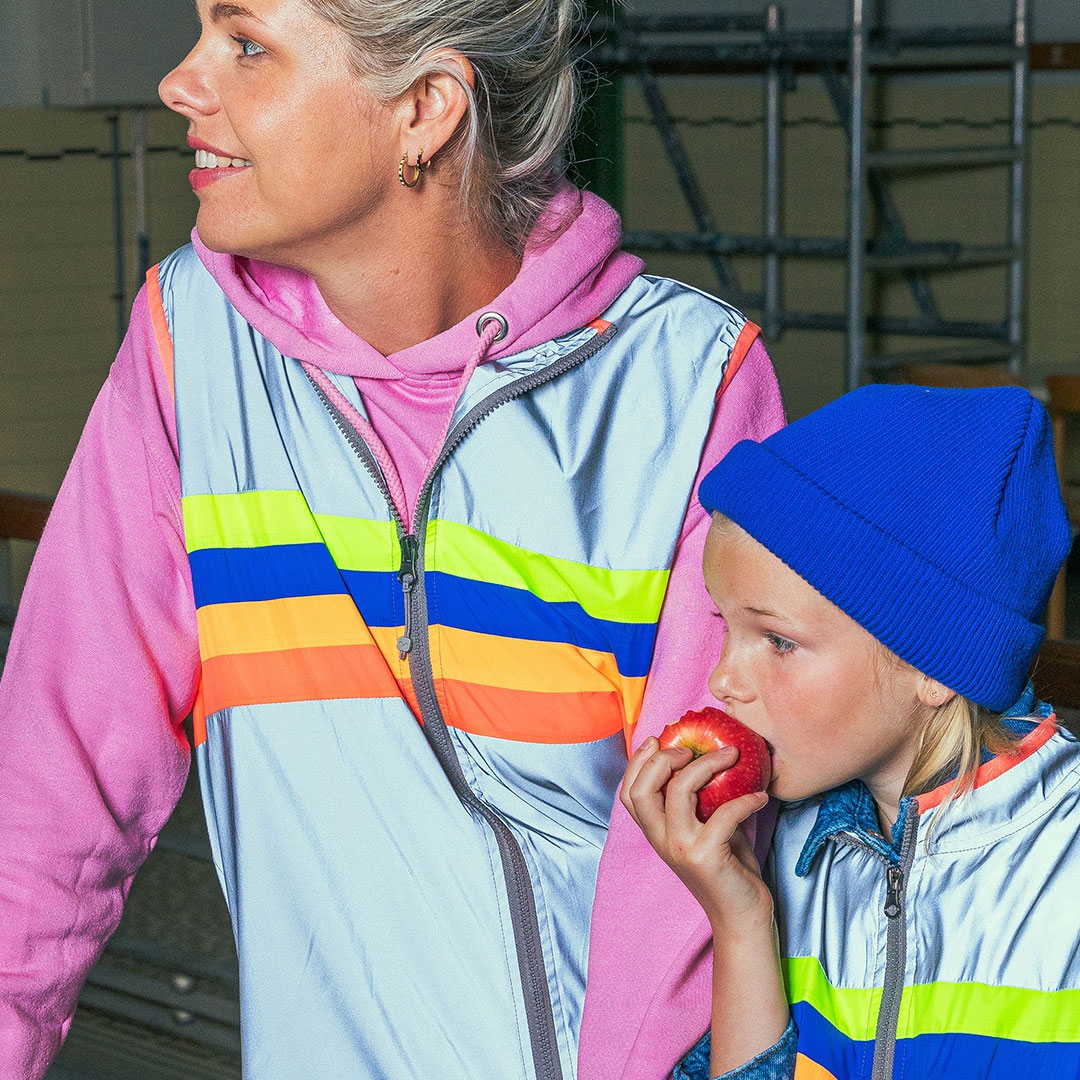 Deze volledig reflecterende bodyglower maakt je extra zichtbaar in het donker. In het daglicht fleur je de straten op in vrolijke fluokleuren.