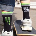 These lifestyle socks are designed to keep you moving. Each sock features a different unique motivational quote, giving you an extra boost with every step. The reflective stripe at the top enhances visibility, keeping you going strong, day and night with a smile