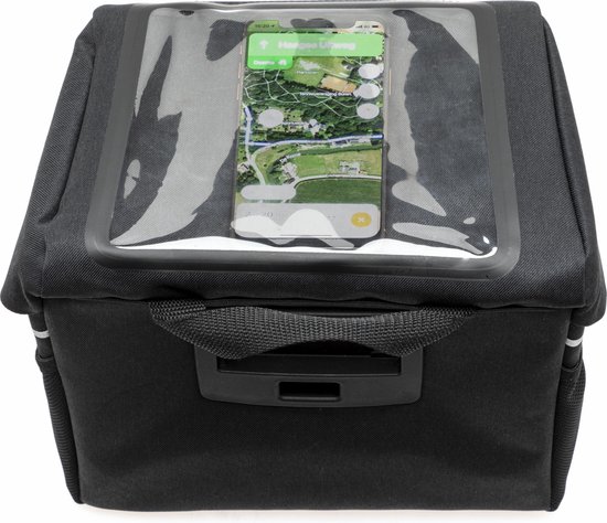 Sportieve stuurtas met speciaal transparant vak voor telefoon en waterdicht door regenhoes. Geschikt voor Klickfix bevestiging.
